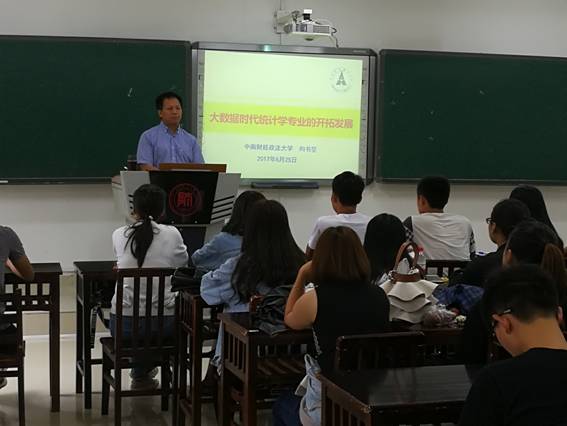 为了让2016级应用统计班的同学进一步了解统计学的专业知识以及该专业的就业前景,增强同学们的学习积极性。6月25日上午9时,mk体育邀请到中南财经政法大学统计学博士向书坚教授在公司花溪校区GJ2101教室为员工做题为:“大数据时代统计学专业的开拓发展”的专题讲座,公司副经理陈震教授、公司统计学专业王敏副教授、向书坚教授的博士生韩爱华以及16级应用统计班全体员工聆听了此次讲座。