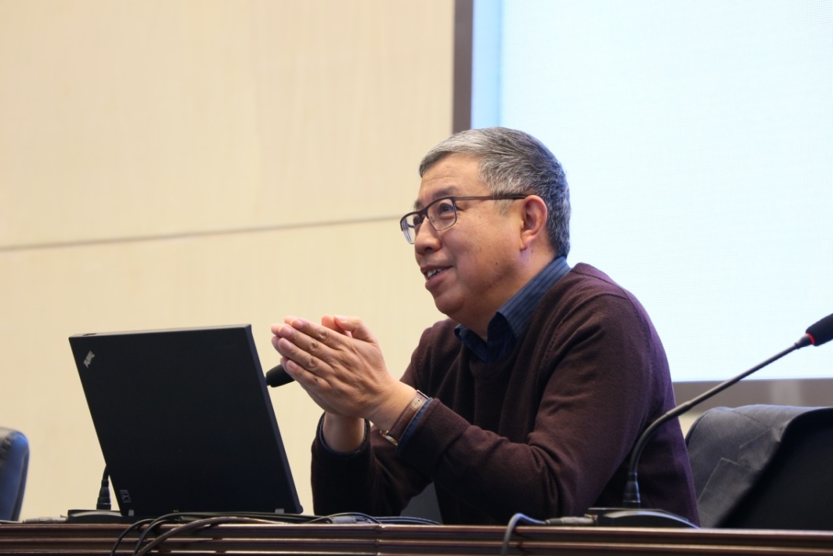 在一阵热烈的掌声中田刚院士先从古典几何中有趣的Puppus定理开始讲起,介绍了使用平面几何中的相似原理证明它的方法,将平面几何的问题拓展到投影几何问题。田刚院士利用图形解释了投影几何中的Pascal定理,并给大家讲解了两个定理的共性,进而抽象出代数曲线的概念。接着,田刚院士以三次曲线为例讲述了Cayley-Bacharach定理,并且说明了该定理可退化为前两个定理。同时,田刚院士还提到了代数曲线在实际生活中的应用,如加密技术。
