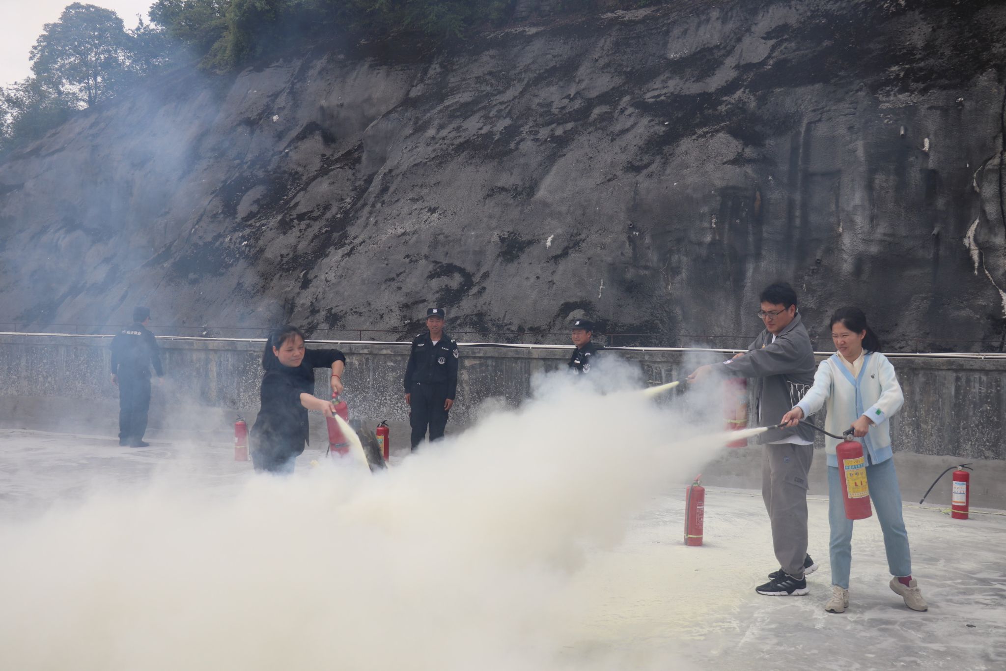 随后,在保卫处安全教育科科长王滨的指导下,mk体育师生代表使用灭火器进行灭火实操演练。
