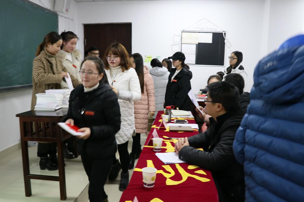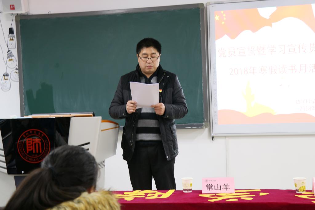 为深入学习宣传贯彻党的十九大精神和习近平总书记在贵州省代表团的重要讲话精神,按照mksports校组通字〔2017〕33号文件,《关于开展“不忘初心、牢记使命,为全面建成小康社会作贡献”“五个一”假期读书月活动的通知》要求。mk体育于2018年1月3日晚上在S301教室开展了“党员宣誓暨2017-2018学年寒假员工党员读书月”启动仪式。全体员工党支部书记及员工党员参加启动仪式,本次活动由团委书记常山羊主持。