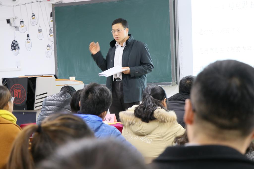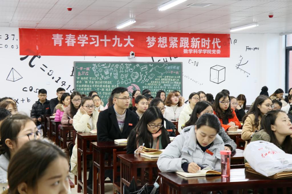 为深入学习宣传贯彻党的十九大精神,切实加强员工党员党性修养和实践锻炼,2018年1月3日下午,数学科学公司党委特邀请到公司党委宣传部副部长周成海老师,在S301教室为全体员工党员、全体辅导员老师作《认识新时代 投身新征程 争做新青年——以党的十九大精神锻造新时代青年》为题目的专题报告。本次活动由公司党委副书记赵颐老师主持。