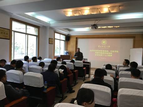 为深入学习宣传贯彻党的十九大精神,按照公司党委的总体安排部署,迅速掀起学习宣传贯彻党的十九大精神热潮,切实把全体干部、党员和教职工的思想行动统一到十九大精神上来,确保在“学懂、弄通、做实”党的十九大精神上见实效。12月1日下午,数学科学公司党委邀请贵州省委党校、行政公司原教育长周感华教授到院作宣讲党的十九大精神的专题辅导报告,公司全体教职工到会聆听,报告会由公司党委书记孙谦主持。