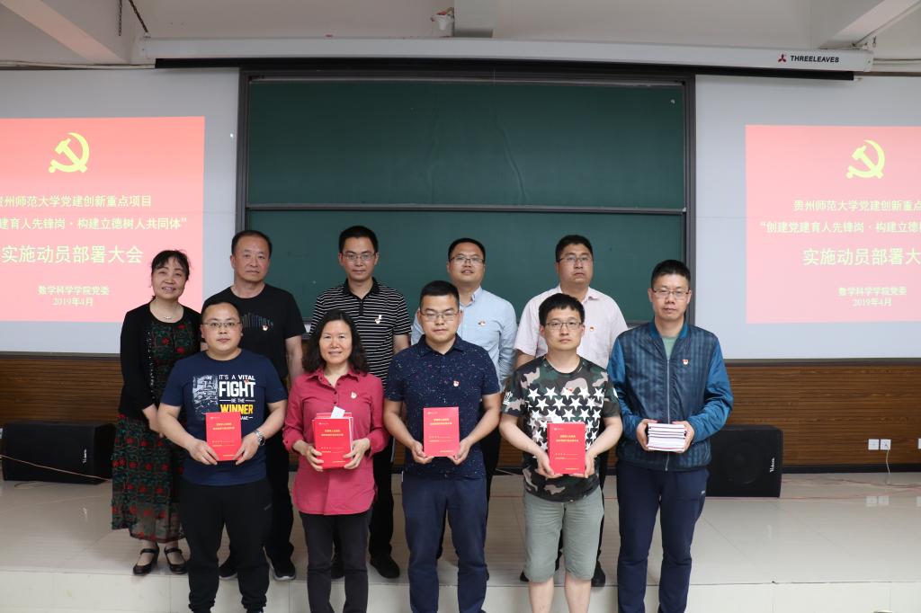 为切实发挥好公司党组织、党员在立德树人中的战斗堡垒作用和先锋模范作用,提高公司人才培养质量。4月28日上午,数学科学公司党委在花溪校区GJ6202教室召开“创建党建育人先锋岗·构建立德树人共同体”党建创新重点项目实施动员部署大会。公司党员领导干部和全体教职工党员、2018级本科生参加会议,会议由公司党委正处级组织员杜梅英主持,公司党委书记孙谦为全体与会人员上专题党课。
