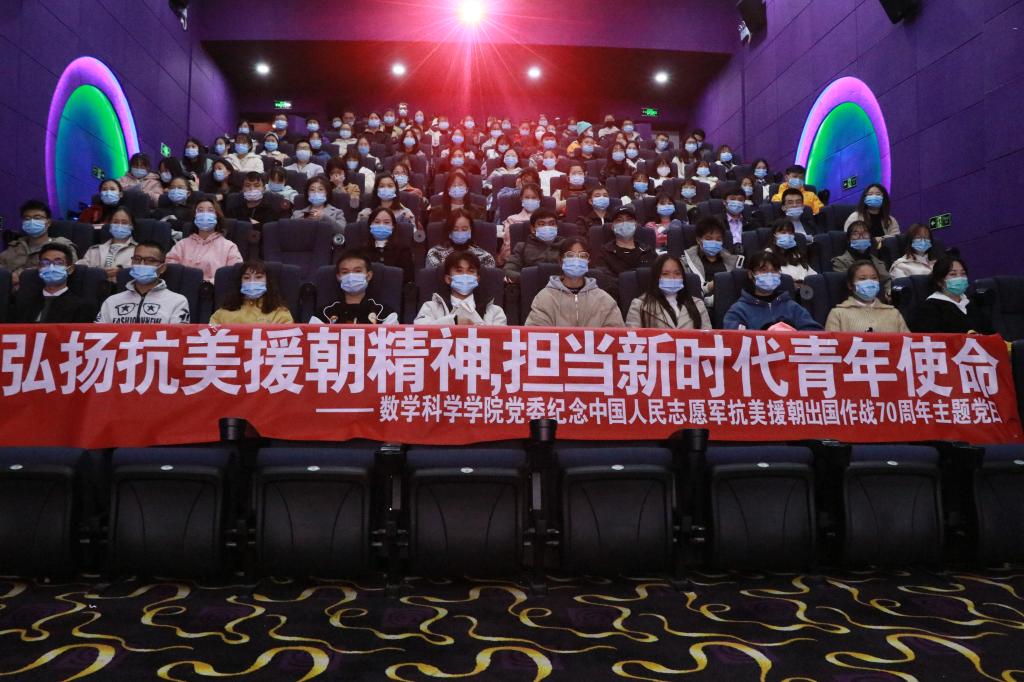 为弘扬伟大抗美援朝精神,11月6日下午,数学科学公司党委组织员工党员及发展对象开展“弘扬抗美援朝精神,担当新时代青年使命”主题党日活动,活动在贵安新区花溪大学城上影国际影城举行,此次活动以观影《金刚川》形式开展。