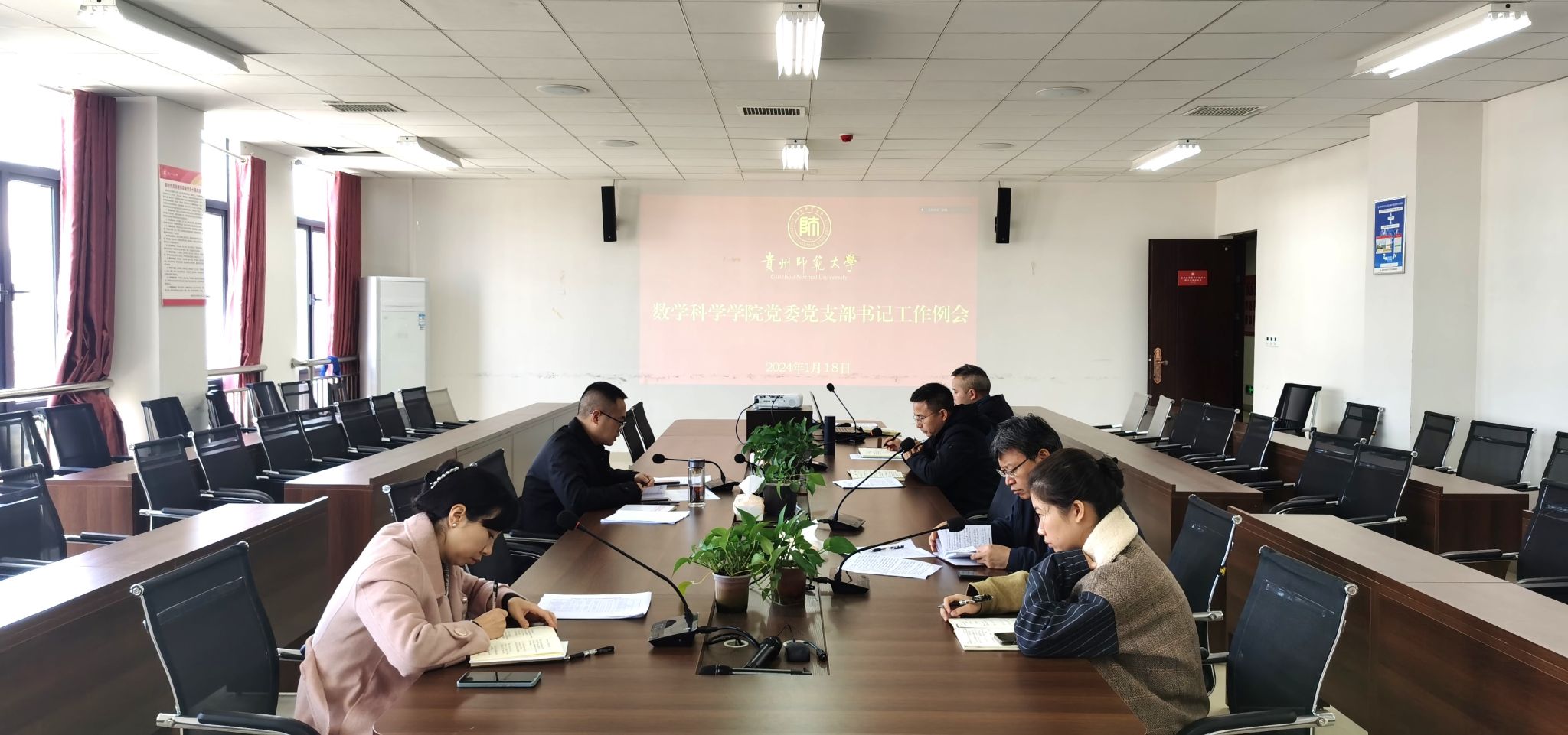 1月18日上午,数学科学公司党委在公司教职工之家会议室通过线上线下相结合的方式召开公司党支部书记工作例会暨2024年公司党建工作会议,公司党委书记孙谦、副书记江剑虹,各师生党支部书记参会。