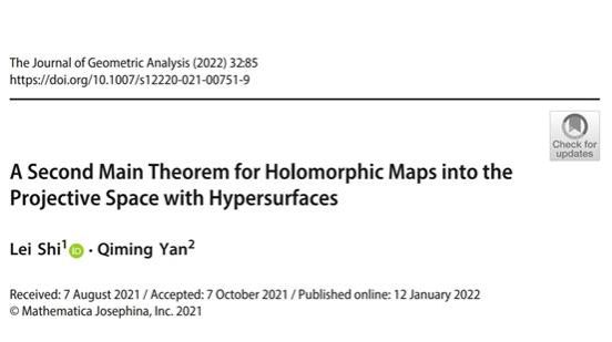 近期,公司石磊博士与合作者在数学国际权威期刊《Journal of Geometric Analysis》上发表了题为“A Second Main Theorem for Holomorphic Maps into the Projective Space with Hypersurfaces”的研究成果。《Journal of Geometric Analysis》是国际公认的数学权威期刊,该刊有着30年的办刊历史,致力于发表与分析、几何、偏微分方程相关的高水平原创性成果。