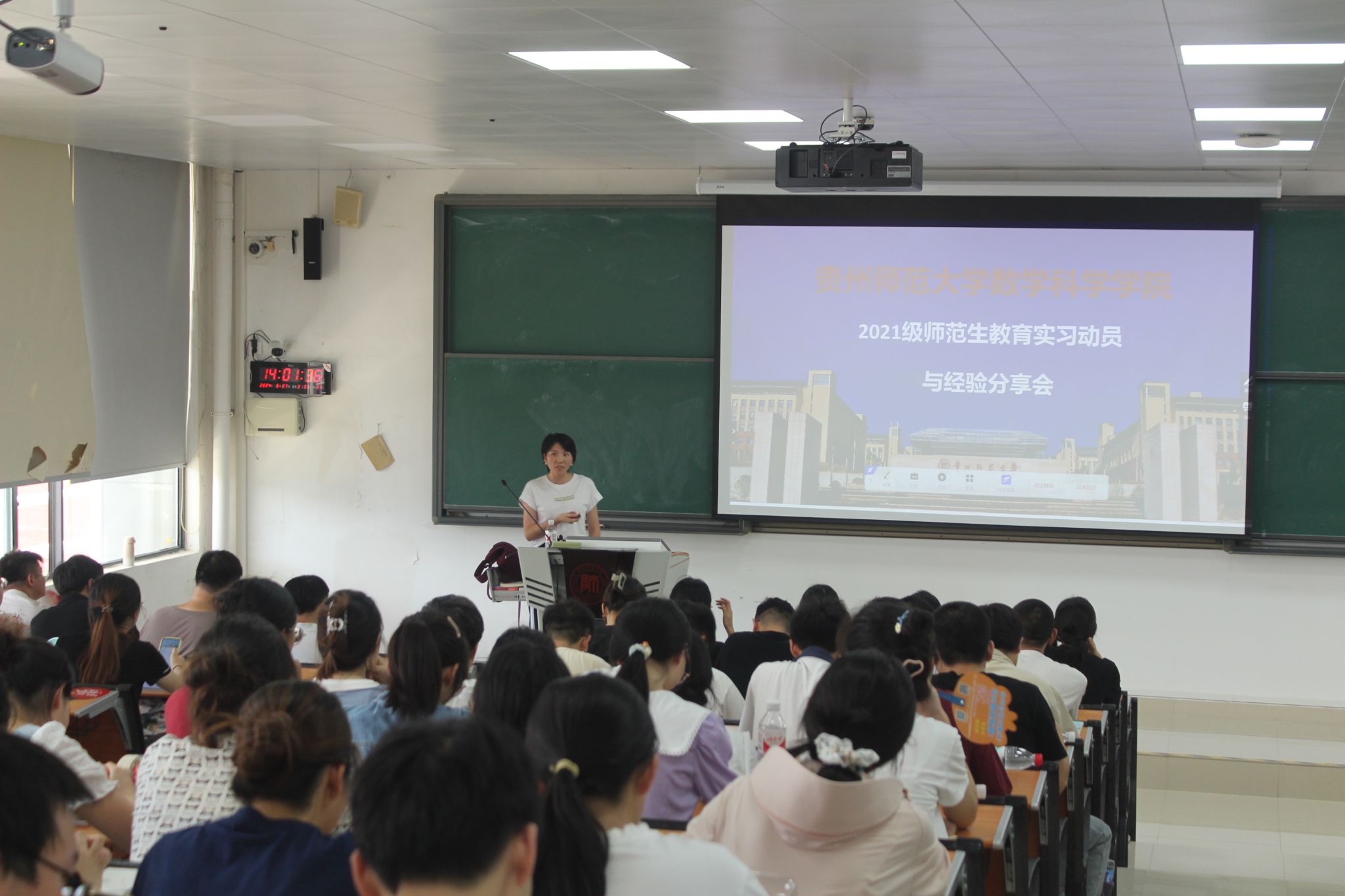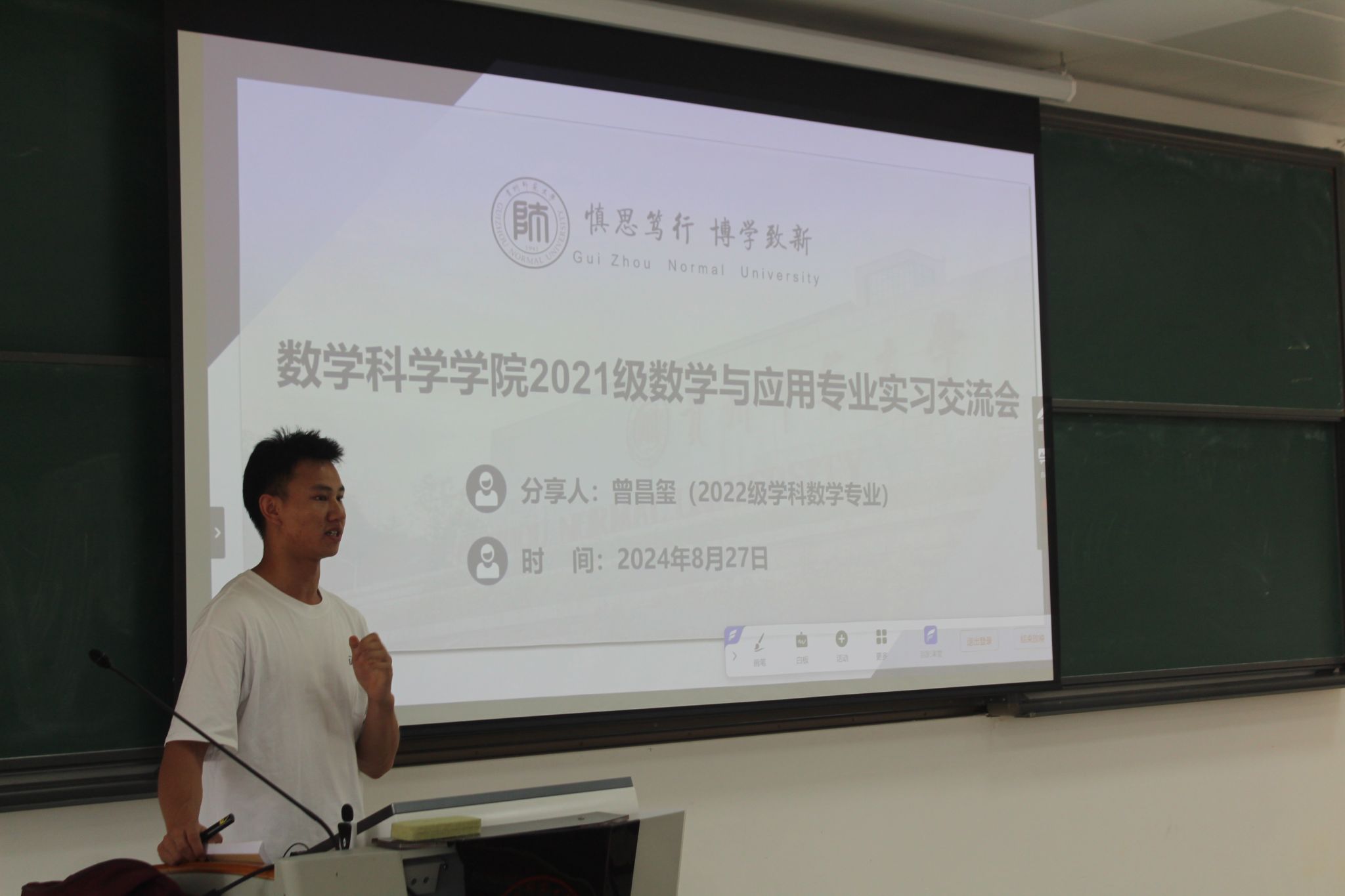 为推进2021级数学与应用数学专业师范生教育实习工作的顺利开展,为师范生对即将迎来的教育实习有一个整体而较全面的认识,mk体育分别于8月27日、9月5日在mksports花溪东校区公共教学楼GJ3501、 GJ3401教室召开了2021级师范生教育实习岗前培训与经验分享会,数学与应用数学系主任彭艳芳老师、2022级学科教学(数学)专业硕士研究生曾昌玺、2024级学科教学(数学)硕士研究生邓婷婷、2021级数学与应用数学专业全体师范生参加了此次活动。