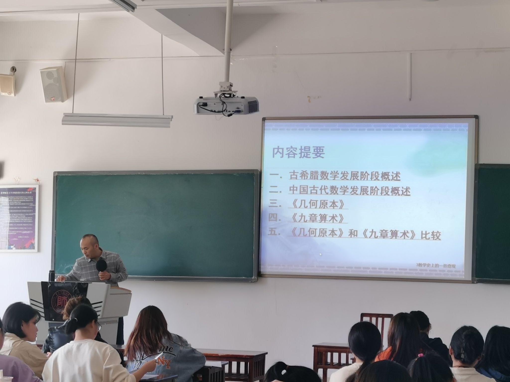 为了拓展员工的数学知识,激发员工对数学未知领域的探索,了解数学史上的奇观,体会数学之美,10月23日,宋运明教授于mksports公共教学楼GJ3215开展了“数学史上的一些奇观”主题讲座,2022级数学与应用数学专业全体同学参加此次活动。