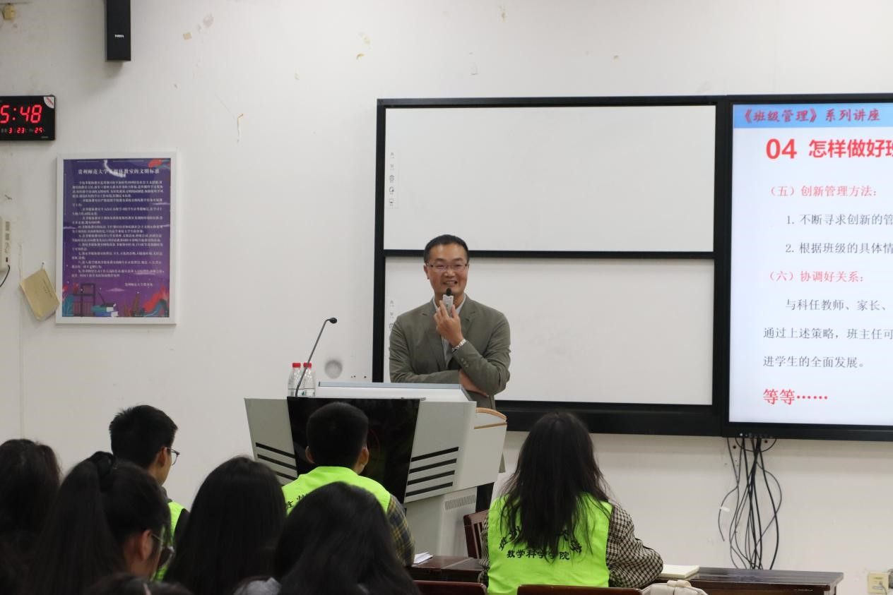 10月23日,mksports附属中学高级教师王开江于mksports花溪东校区GJ3211教室开启了"班级管理"主题系列讲座,2022级数学与应用数学专业全体员工参加了此次系列活动。