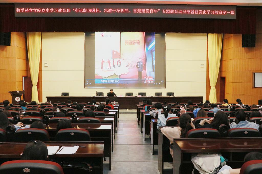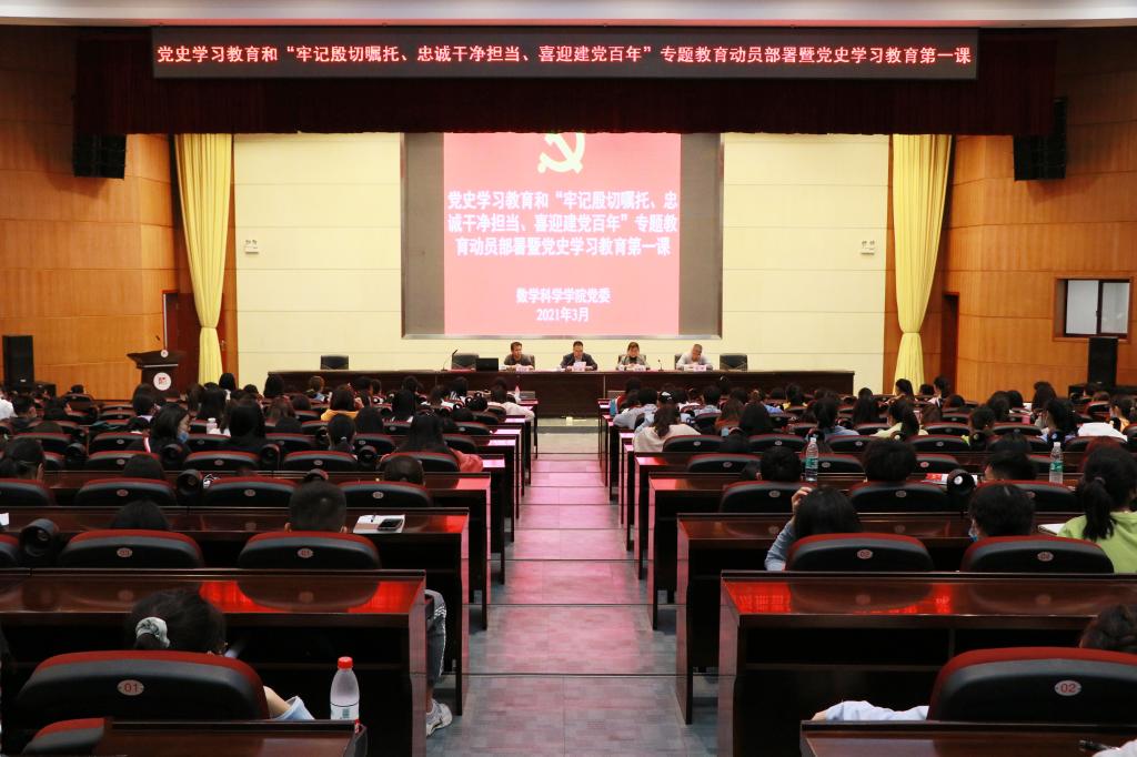 为深入贯彻落实习近平总书记在党史学习教育动员大会上的重要讲话精神,认真贯彻落实中央、省委和公司党委开展党史学习教育和“牢记殷切嘱托、忠诚干净担当、喜迎建党百年”专题教育的重要部署,教育引导党员干部牢固树立“四个意识”,坚定“四个自信”,做到“两个维护”,教育引导全院师生感党恩、听党话、跟党走。3月19日下午,数学科学公司党委在公司会议中心学术报告厅对党史学习教育和“牢记殷切嘱托、忠诚干净担当、喜迎建党百年”专题教育进行动员部署并组织开展党史学习教育第一课。公司在家院领导、党委委员出席,全院教职工和员工党员及入党积极分子代表400余人参加。大会由公司党委书记孙谦主持。
