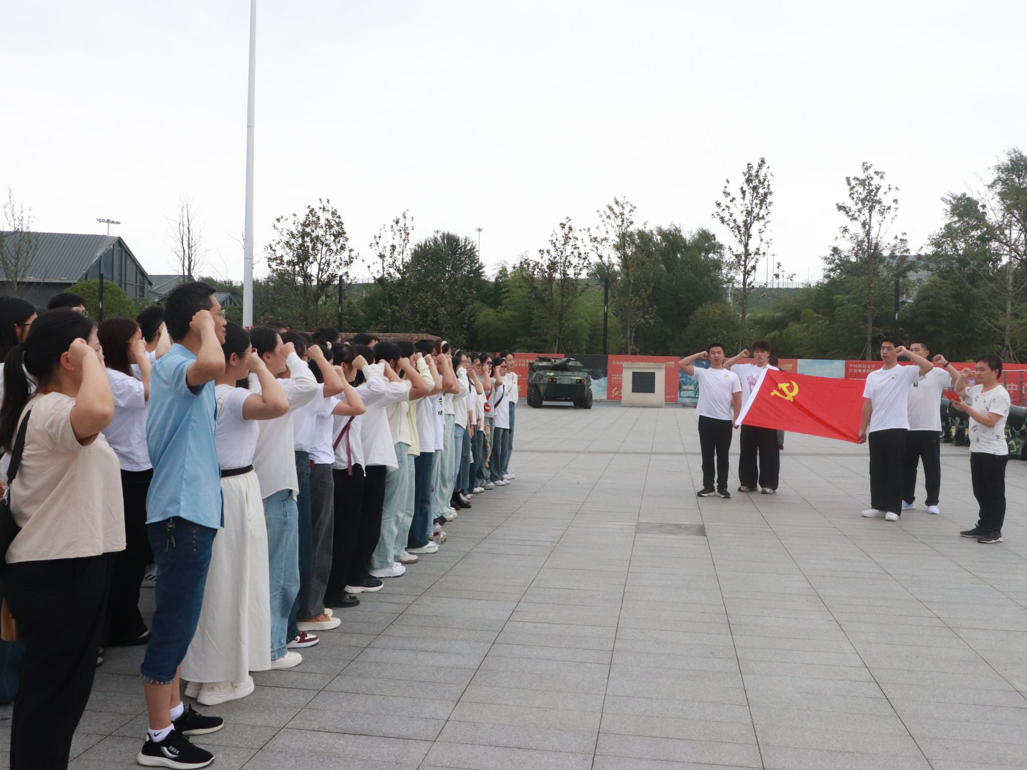 在抵达“红飘带”数字体验馆后,全体党员在信息与计算科学系党支部副书记李豪老师的带领下庄严肃立,举行庄重的“缅怀革命先烈,重温入党誓词”仪式,面向鲜红的党旗重温入党誓词,铿锵誓言响彻现场,表达了师生们赓续红色血脉、践行初心使命,进一步坚定为共产主义事业奋斗终身的决心。
