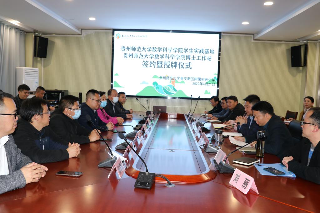 4月21日下午,mk体育与mksports贵安新区附属初级中学共建“新时代基础教育强师实践基地”签约授牌仪式在师大贵安附属初中会议室举行。数学科学公司党政班子成员、数学教育研究所负责人,附属初中校领导、中层干部和数学组教师参加签约挂牌仪式。仪式由附属初中副董事长贺宁馨主持。